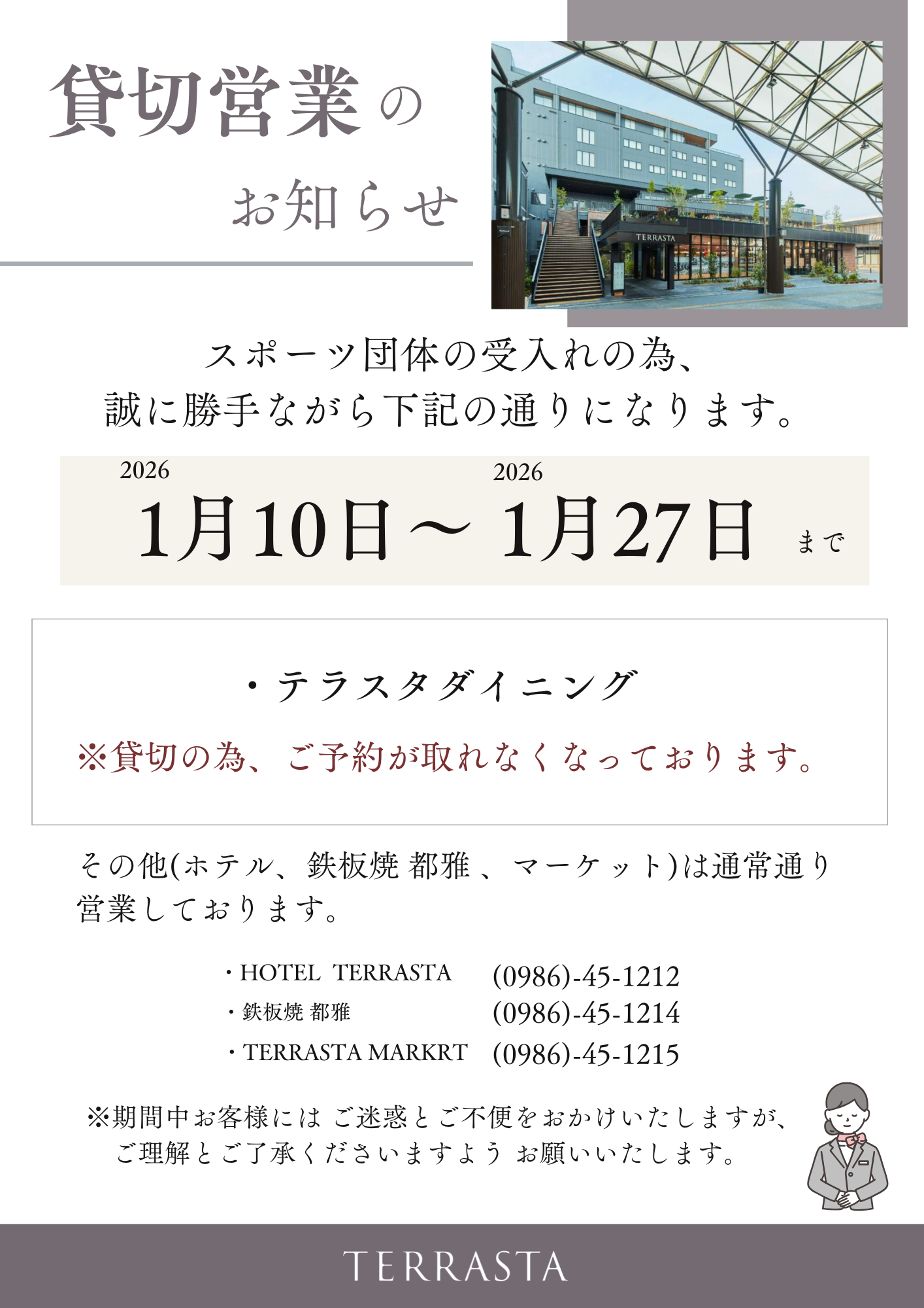 | 3F HOTEL TERRASTA | TEL. 0986-45-1212 |