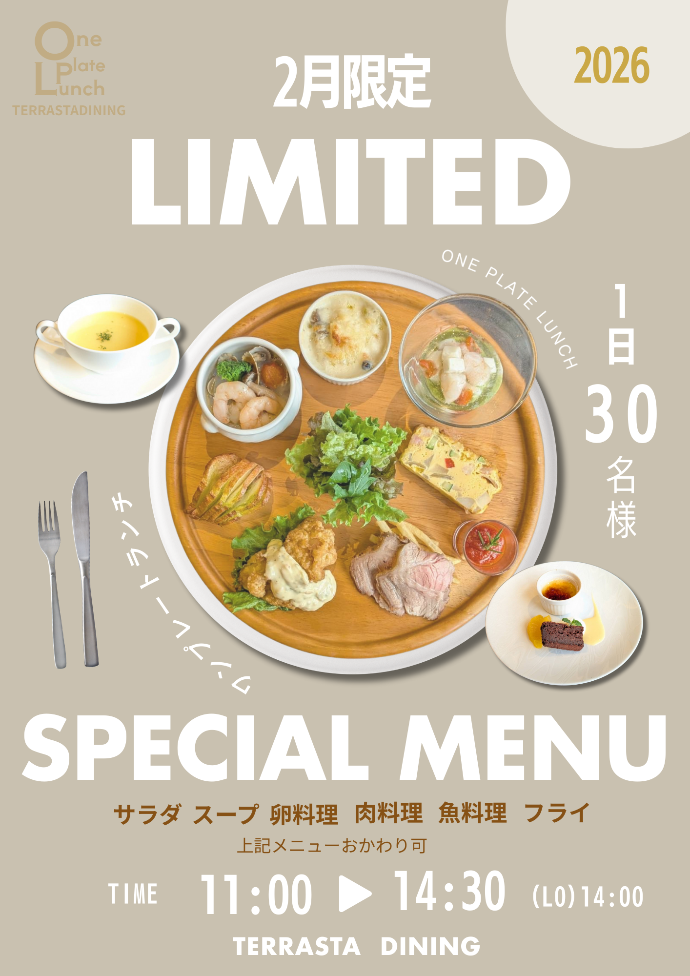 2月1日(日)~2月28日(土) 11:00~14:30(LO14:00)