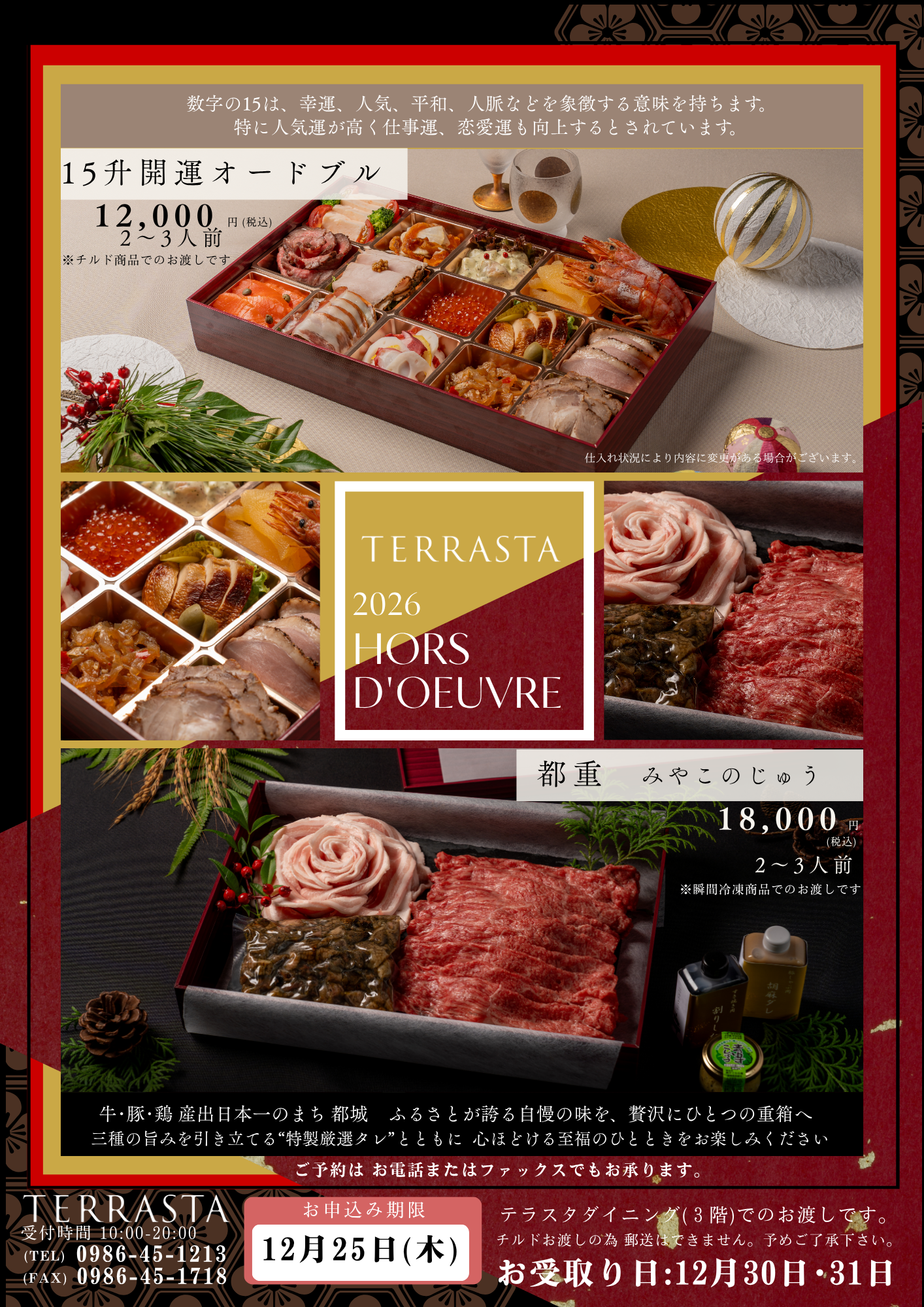 『TERRRASTAオードブル等 ご予約受付開始』ご案内