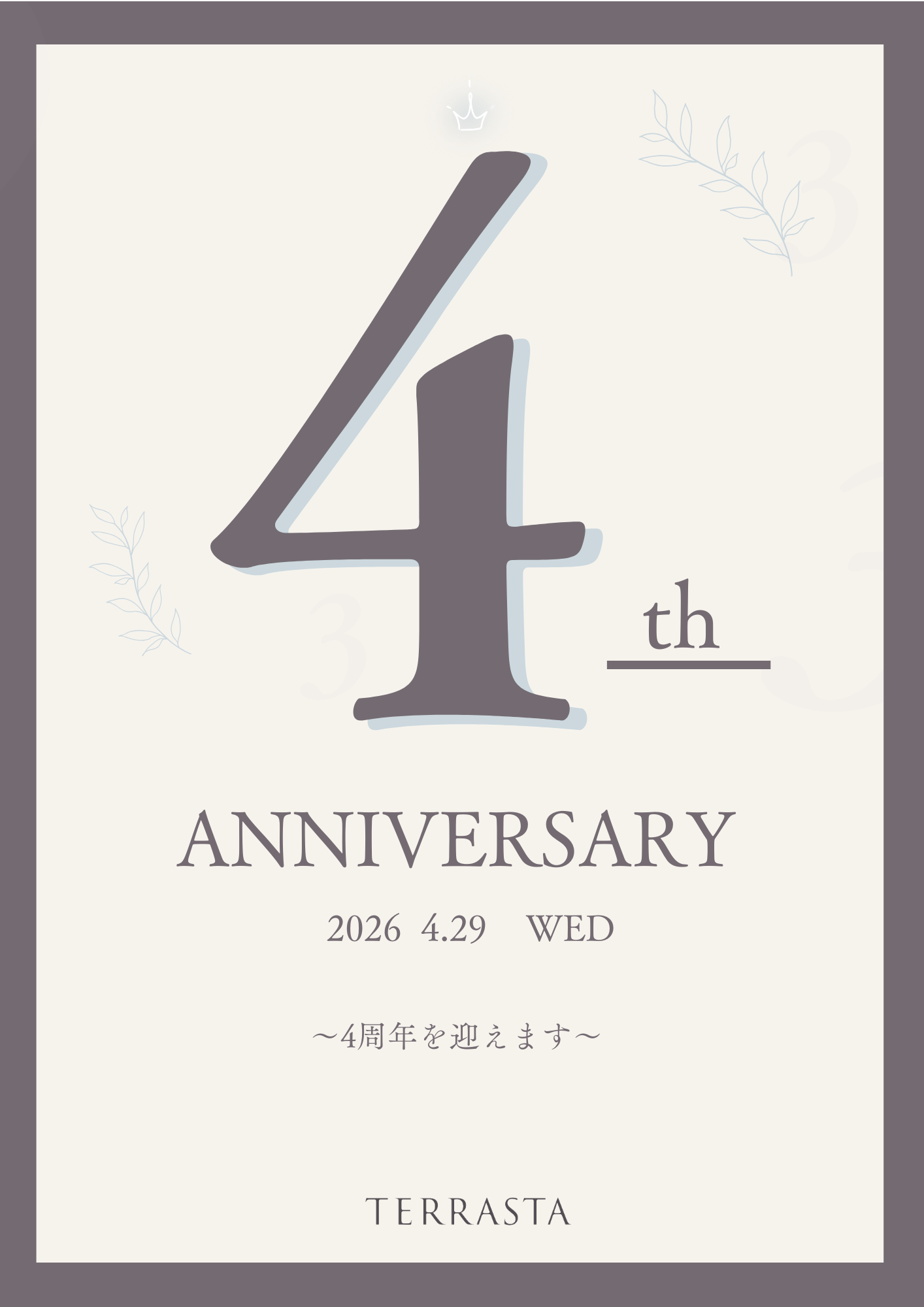 平素より当店をご愛顧いただき、誠にありがとうございます。 おかげさまで、4月29日に 4周年を迎える運びとなりました。 日頃の感謝の気持ちを込め、ささやかながら1日限定のイベントを開催いたします。 どなたさまにもお楽しみいただける内容をご用意しておりますので、ぜひご来場ください。